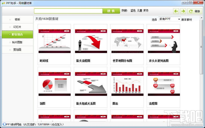 拥有众多网友时刻分享的PPT素材,成千上万个模版、形状组合、剪贴画、图像等各种素材,只要你制作PPT需要的素材,这里都有哦,而且持续有网友更新上传。