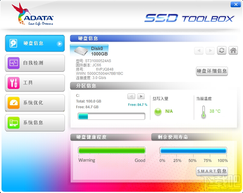 ADATA SSD Toolbox威刚固态硬盘管理工具功能特色: