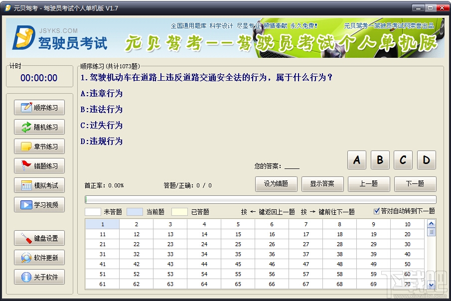 元贝驾考个人免费版是由驾驶员考试网推出的免费驾考软件,为广大学员倾情奉献,解决不能上网在线练习的学员的烦恼。元贝驾考2015采用2014年官方新版的全国通用题库,绿色软件,无需安装,立可使用。元贝驾考首发2014年公安部发布的新全国通用题库973题,适合各种类型驾考科目一考试学习使用。