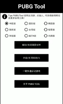 1、首先下载好pubgtool,打开后选择对应游戏的版本,然后点击解锁画质。