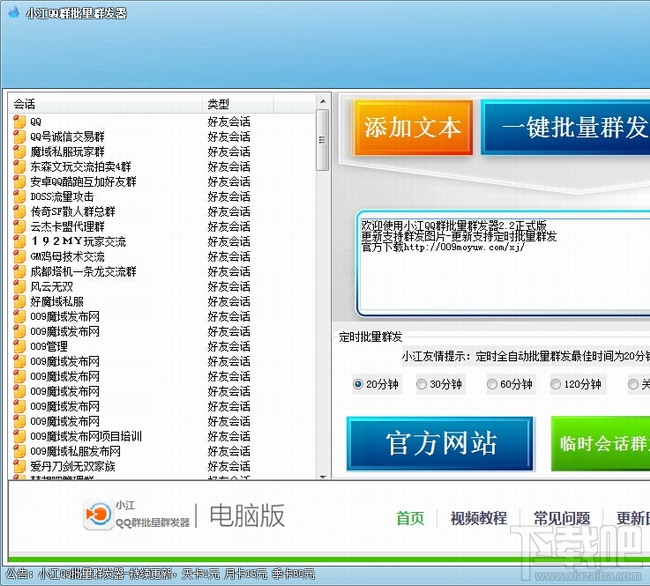 10.53 MB/2020-08-17下载吧提供qq陌生人推广大师绿色版,qq陌生人推广大师界面清新简洁友好,用户能在较短的时间内掌握软件的使用。qq陌生人推广大师具有比较强大的QQ陌生人推广功能,支持推送推广信息到非QQ好友,高效稳定,能满足用户的需要。