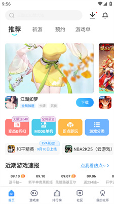 首页:打开应用后就能进入首页,这里拥有多个不同的入口【推荐】【新游】【游戏单】等内容。