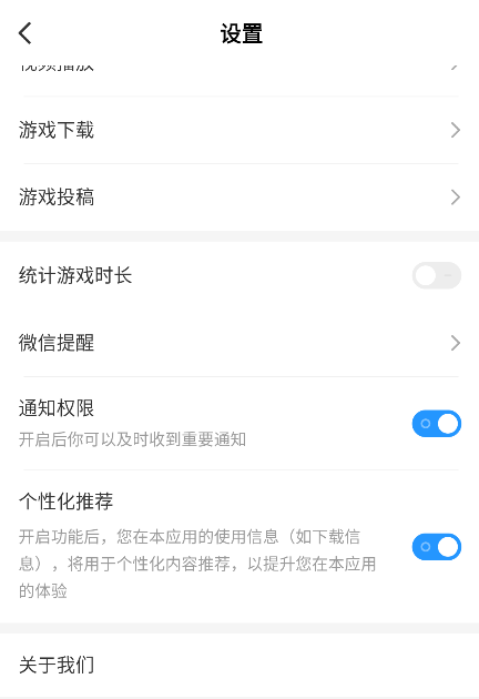 2、在个人主页往下滑找到设置,进入设置页面以后找到【关于我们】。