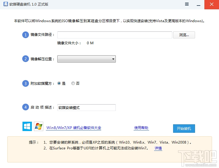 软媒硬盘装机工具绿色版是一款快速便捷的硬盘装机工具,软媒硬盘装机的所有数据操作都在硬盘上进行,整个操作流程非常简单,无需核对繁复的键盘指令,也不必亲自动手解压文件,只需准备好安装系统的必备材料即可操作,不需要刻录机、光盘或者u盘,仅需4步,即可完成安装系统的准备工作,毫无上手难度。
