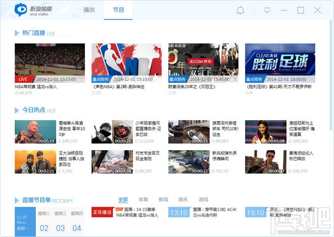 新浪视频客户端是由新浪视频推出的一款在线视频观看的客户端。现在有了新浪视频播电脑版客户端,你就不用每次看视频都要百度新浪视频啦,新浪视频播放器提供每日新时事、轻松搞笑、娱乐八卦视频以及影视大片,全天24小时即时发布。使用客户端看直播,再也不!安!插!件!就是这么任性!全新加速技术,直播提醒功能,给您更贴心、流畅的视听体验。在这里您可免费在线观看新浪视频网站内全部视频,每日新闻资讯,独家NBA直播,更有你心水的明星陪你畅聊。