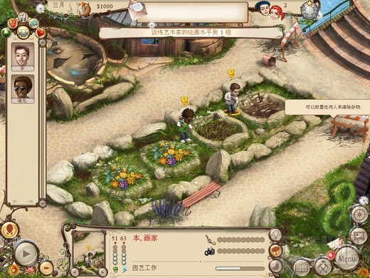 根据背景主题,本作设计了画家,雕塑家,音乐家,舞者,摄影师5大职业类别。按照逐个角色的兴趣爱好,将他们从新人培养为某个行业的大师。最为关键的是,这些艺术家们需要通过观赏建筑、植物获得灵感,去创作作品。当作品完成,会自动出现商人上门购买。赚取足够的金钱将帮助你提升庄园设施的修复和升级工作。