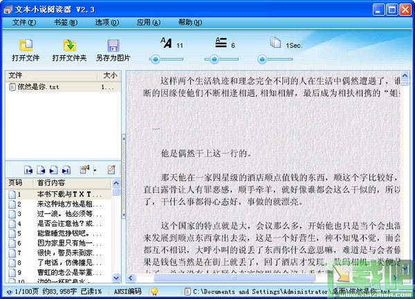 方便小巧的TXT文本小说阅读器,支持ANSI、Unicode、Unicode Big Endian、UTF-8编码文本文件。