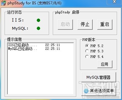 4、本程序纯绿色,支持PHP5.3和PHP5.4一键切换,支持系统服务和非服务两种启动方式,自由切换。改变安装路径或拷贝到别的电脑上也可正常运行;即便是运行完再更改路径也能运行,真正做到无须配置。重写控制面板更加有效直观地进行控制程序的启停。