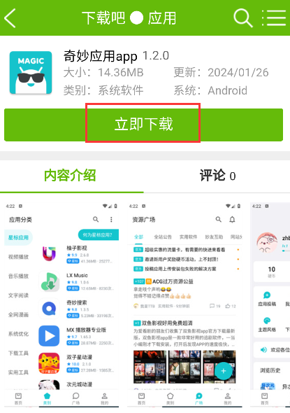 下载:打开下载吧【奇妙应用】下载页,点击立即下载即可。