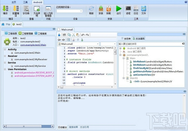7、内置Log等调试工具,方便应用进程、logcat输出查看等进阶操作,监测修改apk的运行状况,以助于分析和查找错误