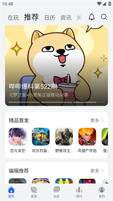 1、打开应用以后,点击顶部的推荐栏推荐精品游戏。