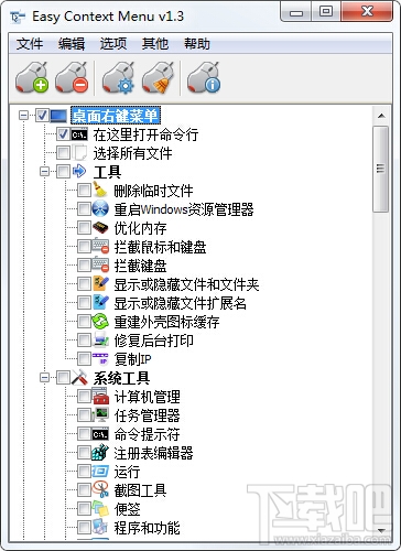 Easy Context menu中文版是一款相当强大的右键增强工具,主要功能就是让我们在桌面、我的软件图标、文件夹上点击右键时,可以在选单中新增各种系统工具、强化功能与各种超强应用。Windows默认的右键菜单也许并不能满足我们的日常需求,我们可以通过Easy Context menu来使右键菜单功能更强大,更符合自己的使用习惯!