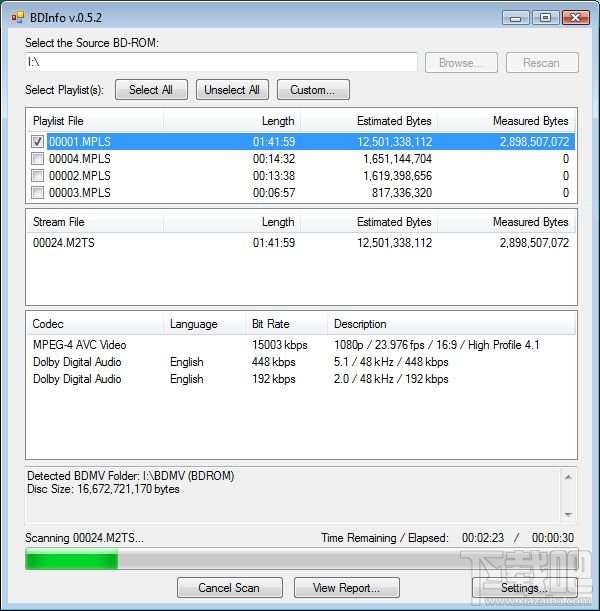 BDInfo工具的目的是要收集视频和蓝光电影光盘的信息,其中包括音频技术规格:光盘尺寸、播放内容、视频流的详细信息、音频流详情、字幕流详情、图形流详情等。
