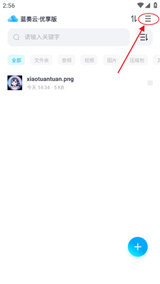 1、进入蓝奏云优享版中,点击右上角的三横按钮。