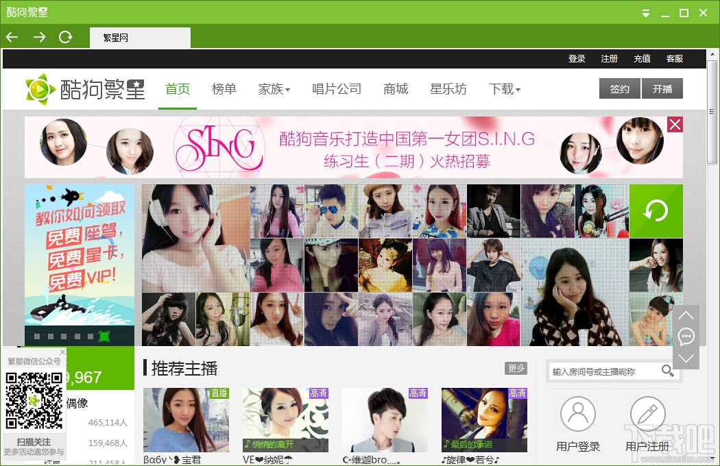繁星不单单为艺人和主播提供推广平台,使其与粉丝互动,具备线上歌友会功能,也会将原创单曲、拍摄MV推荐给艺人,将艺人的单曲、MV在酷狗播放器上进行推荐;