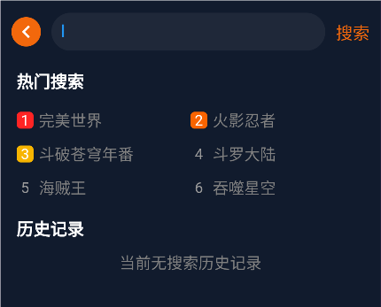 2、进入搜索页面,输入想要搜索的动漫名称,也可以点击热门搜索直接查看。