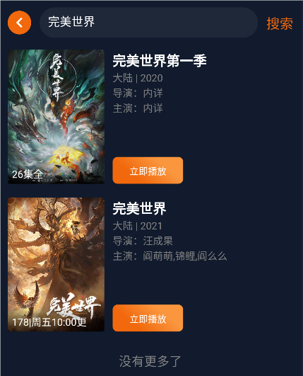 3、匹配到对应的搜索结果,点击【立即播放】进入详情播放页面。