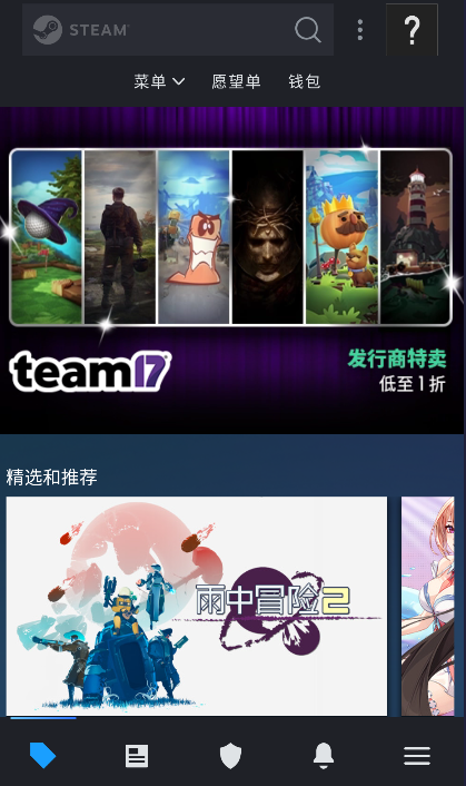 1、登录steam手机版,然后点击右下角的【三】,进入应用菜单。