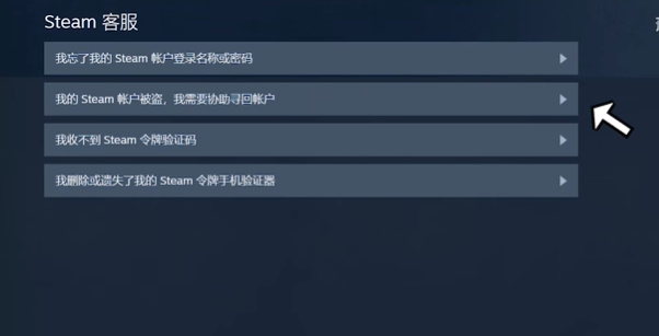2、在steam客服频道,选择【我的steam账号被盗,我需要协助寻回账户】。