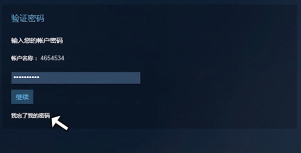 6、验证密码页面,选择忘记密码。