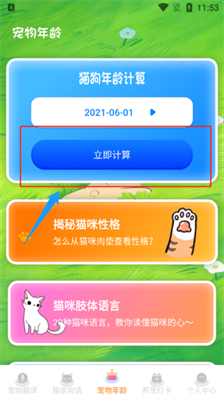 1、打开宠物猫咪翻译器,点击【宠物年龄】。