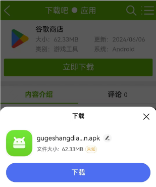 1、首先用户需要登录【下载吧】,找到谷歌商店应用下载页。