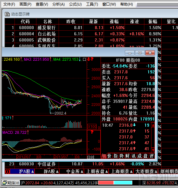 当翻动到相应的品种时,自动补充分笔数据,也可以盘后通过面板上的补分笔一次性补齐。