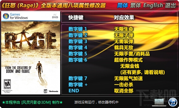 狂怒是一款第一人称射击的游戏。故事发生在后启示录时代,美国西南部的马路英雄背景下。狂怒是非常好的FPS佳作,当然想畅玩狂怒,当然不能少了狂怒修改器。下载吧提供的狂怒修改器可以无限生命、无限子弹、无限手雷、无限氮气加速等功能,让你玩转狂怒。