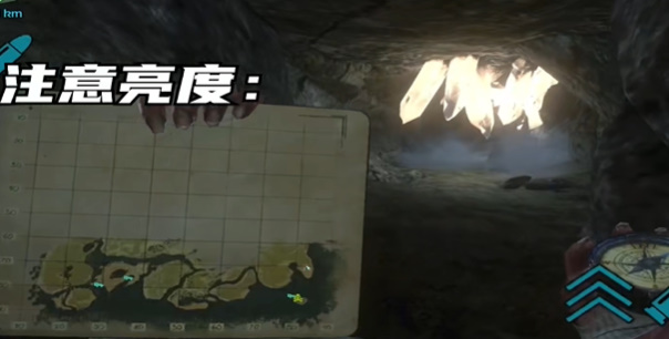 4、随后我们打开查看地图,然后一点点从洞口进入,来到下图附近,如果屏幕亮了一下说明卡成功了。