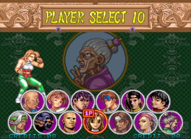 1993年初,阿特拉斯(Atlus)公司决定进入格斗游戏领域,并推出了豪血寺一族第一作。当时格斗游戏非常流行,但本作还是给街机游戏带来了轰动。这个游戏以自己的特点和当时非常流行的格斗游戏如街头霸王2(卡普空,Capcom),真人快打2(Midway)以及侍魂(SNK)等在市场上竞争,并且获得成功。是这个游戏把搞笑的元素带入了格斗游戏。谁会记不住格斗游戏历史上热门的老婆婆梅和种,还有她们的令人难忘的飞行道具岩碎齿呢?