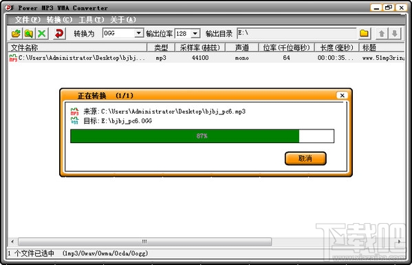 Power MP3 WMA Converter是一个能够将任何音频文件从一种格式转换到另一种格式的程序. 它也支持更改MP3或WMA格式音频文件的位率. 有了转换列表,您可以一次就轻松地转换大量的音频文件. 它还支持一些非常有用的功能,比如更改标签信息,自动重命名等等,它既是mp3转换为OGG格式的工具,也是OGG转MP3的必备音频转换工具,你可以把mp3文件转换为手机铃声专用的OGG类型,或者把OGG格式转换回mp3格式,下载吧提供Power MP3 WMA Converter绿色中文免费版下载,Power MP3 WMA Converter支持时下最流行的MP3,WMA,OGG,WAV等格式.它也支持更改MP3或WMA格式音频文件的位率.转换速度快捷,转换效果出众。