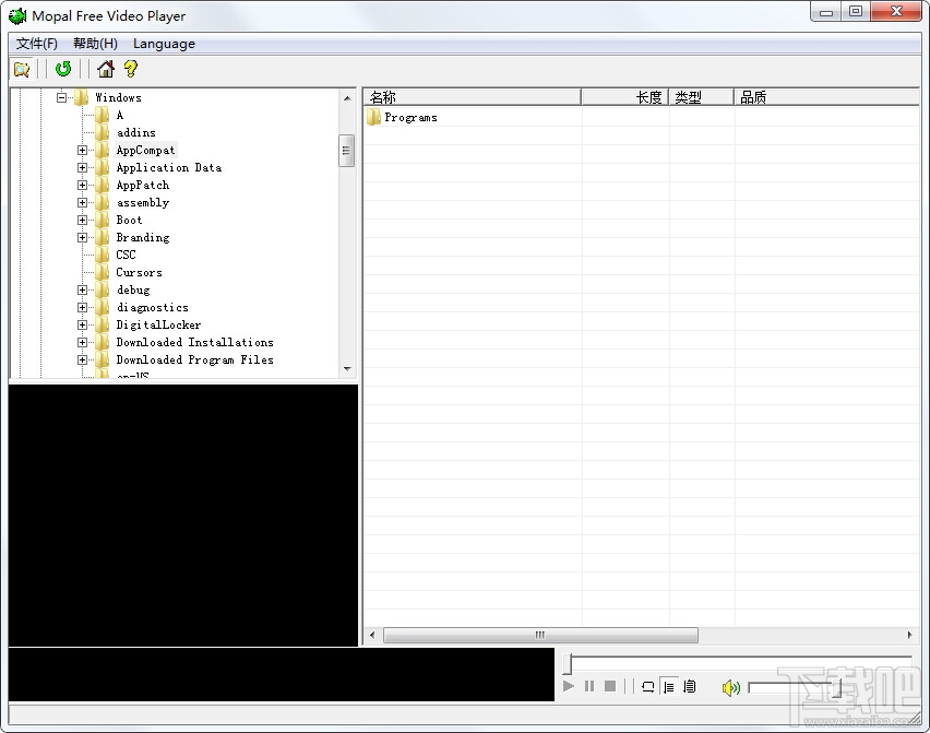 Mopal Free Video Player(vob播放器)是一个免费的vob格式视频播放器。Mopal Free Video Player支持播放vob格式的文件,而且vob播放器简单易用不包含有任何广告,vob格式播放器提供了类似资源管理器的界面,可以帮助你轻松视频文件。支持剪切、复制、删除、重命名文件,以及创建文件夹,能够按照文件名播放长度、媒体类型品质、文件尺寸或文件修改时间来进行排序。