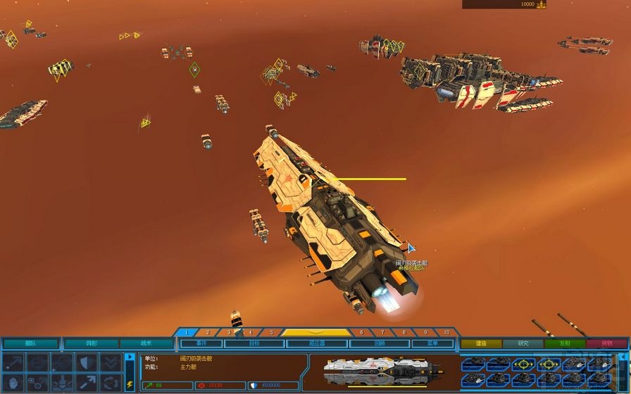 在游戏中,舰船种类的不同决定着其大小尺寸的不同。无论是小型侦察飞船,还是大型巡洋战舰,都按照一定的比例出现在游戏屏幕中。或许有的玩家还记得《家园》中的Heavy Cruiser是一个大块头的家伙,那么当看到《家园2》中Hiigaran族的 Battlecruiser时,才会知道什么样的飞船才是真正的大型飞船。比Battlecruiser更大的是Shipyard,它是一个活动的造船基地,可以提高玩家生产舰船的速度。不过,它的防御性极差,需要玩家指派一定的舰队对其进行保护,否则它只能成为敌人刀下的羔羊。