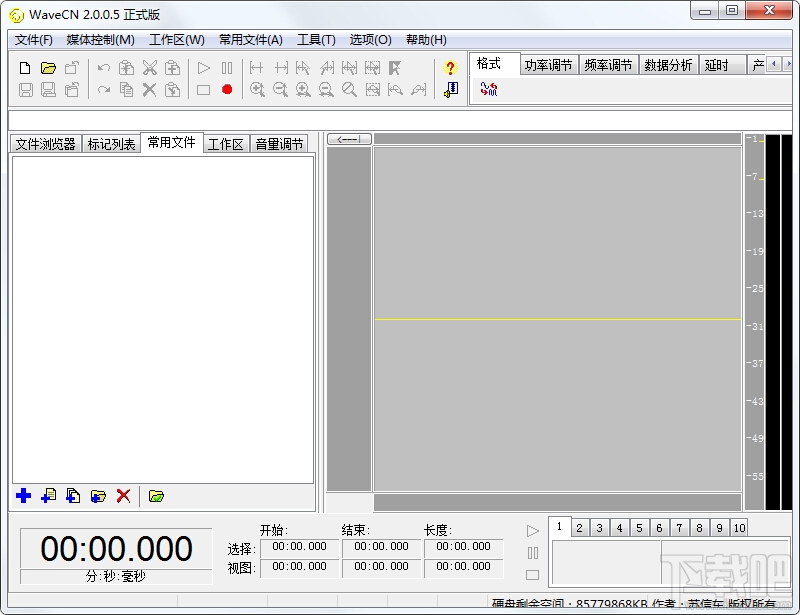 WaveCN免费版是一款中文录音编辑处理软件。WaveCN支持多种音频文件格式打开、保存,可以对频数据进行编辑。不仅仅如此,WaveCN还支持通过插件扩充、高保真的采样率转换、多重剪贴板以及剪贴板预览、标记列表和声控录音和直接录音为WAV文件等等功能。