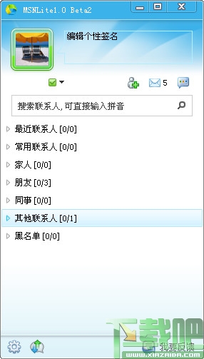 MSN Lite针对办公室人群,增加了名片与备注功能,对联系人更易识别,再配合拖拽分组,更方便的管理联系人。