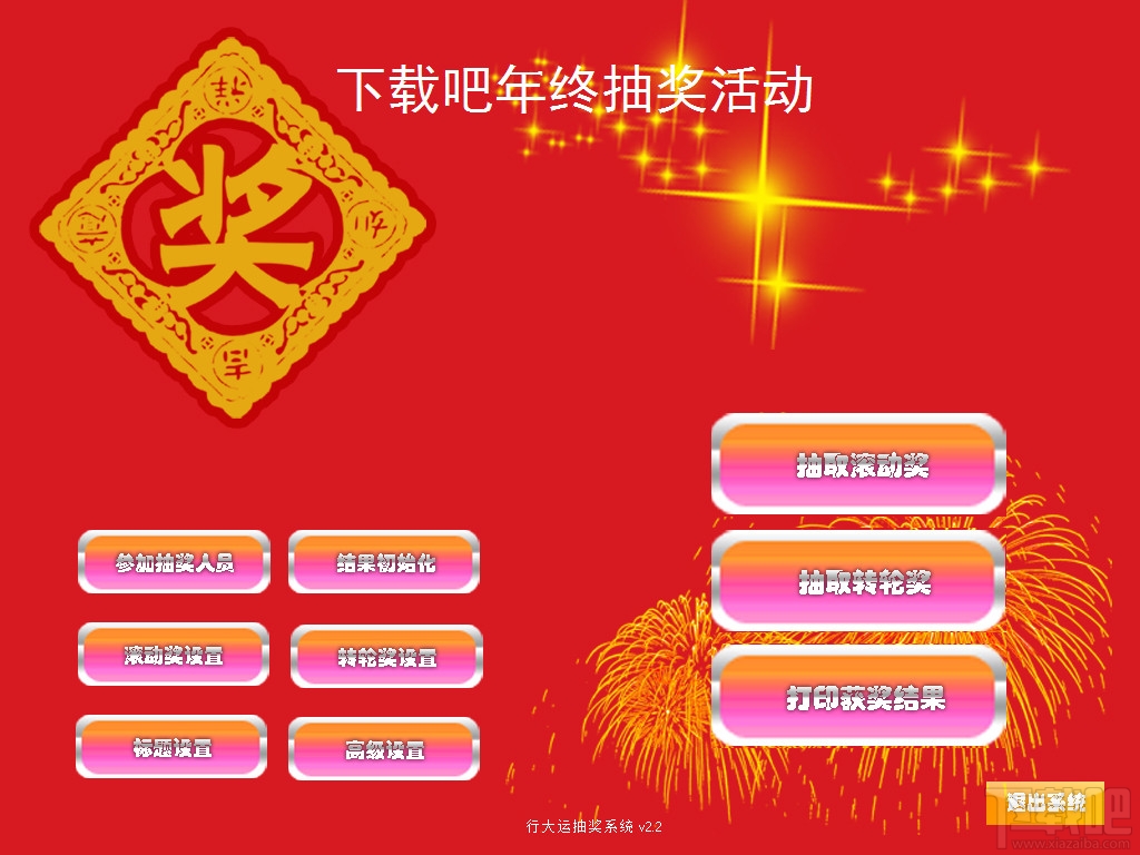 行大运抽奖主界面可以设置文字标题自定义背景图片请 替换 images 目录下 form.jpg form1.jpg form2.jpg form3.jpg 即可,分别对应主界面背景,滚动奖背景,转轮奖背景,转轮奖中奖显示背景。自定义背景音乐请 替换 wav 目录下 Backgroup.mp3文件 请勿删除软件目录下的任何文件。滚动奖可以设置文字抽奖或图片抽奖模式,修改保存即可。人员和奖品均可设置图片 可设置奖品数量 比如一等奖2个 二等奖3个等 人员和奖品均可excel导入,可设置标题。转轮抽奖可以设置 中奖概率、比率等,可以自定义颜色。绝对绿色版,无需安装,解压即可运行,本软件绝对无毒无插件,请放心使用。