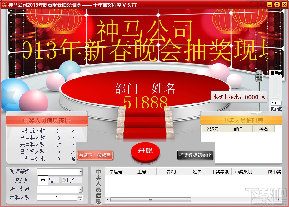 十年抽奖系统是针对工厂企业年终聚餐抽奖晚会所量身定制的一款抽奖程序,是作者经历了多次亲身体验而写。十年抽奖系统数据库文件采用微软的Access数据库,无密码,可以直接打开对抽奖人员信息进行编辑修改,也可以在程序里对各项数据编辑,非常方便!