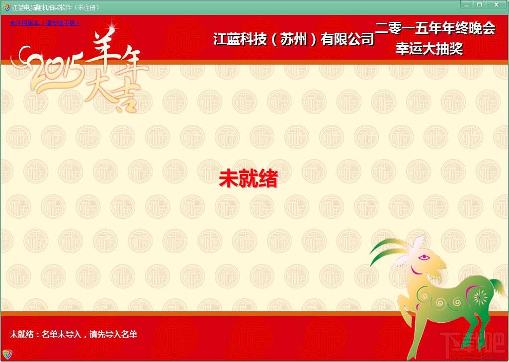 02、设置灵活、操作简单、功能强大,适用于各类抽奖活动场合。抽奖主界面所有元素均可自由更改,包括:元素内容(标准版不能随意更改“使用单位名称”,注册的是什么名称就是显示什么名称。购买标准版的话,付款后,您需要提供一个注册名称给我们,这个名称就是用来替换“江蓝科技(苏州)有限公司”。我们会根据您提供的名称来生成对应的注册码。注册后,这个名称也不能任意更改的。如需更改,即必须重新购买对应的注册码。增强版可以任意更改。)、字体、字体大小、字体颜色、元素阴影及阴影颜色;所有元素均可用鼠标进行位置拖动并保存。