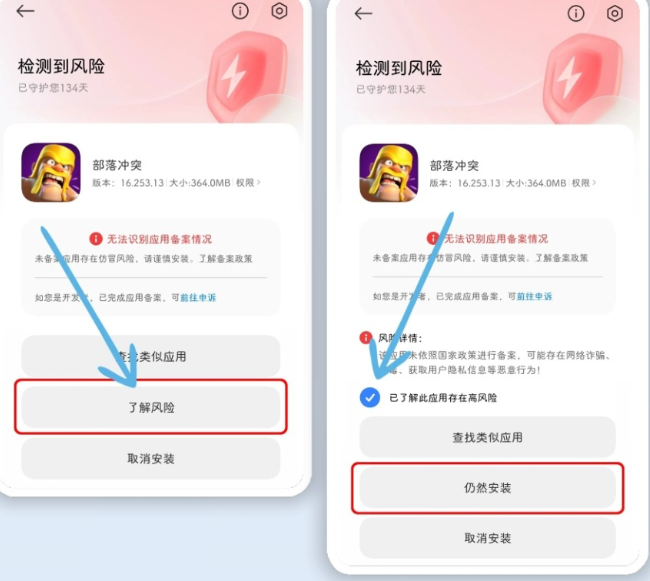 5、最后关闭安全守护页面后,就能正常安装下载,不会提示风险了。
