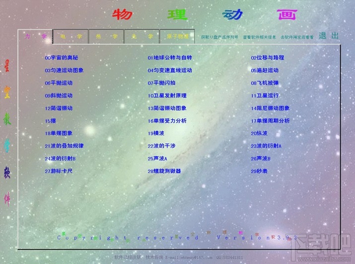 中学物理(初中物理动画,高中物理动画)涉及的许多物理过程和物理现象是很难用常规实验方法再现和验证的,《物理动画》试图通过电脑这种教学媒体把这些过程和现象模拟出来,以提高教学效率和取得好的教学效果。物理动画软件包含的每个动画都可以被别的课件制作软件(如powerpoint)单独调用。物理动画软件适合中学物理教师上课教学使用,也适合学生自己研究学习使用。