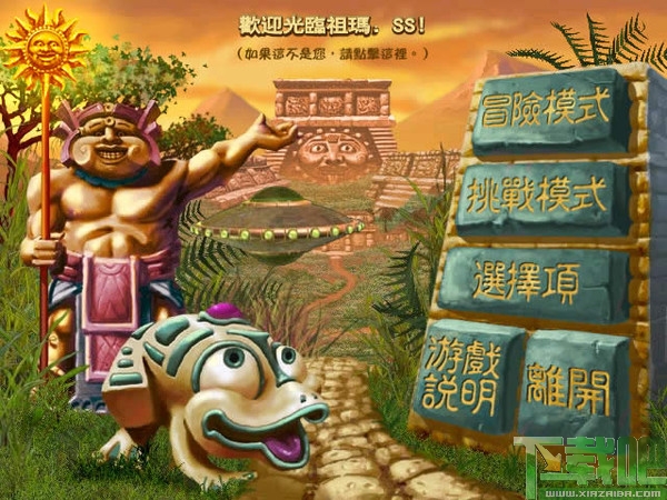 祖玛传奇(Zuma Deluxe)是一款老少皆宜的益智类游戏,主角是一只石青蛙,它会吐出各种颜色的小球。小球造型美丽并且有着神秘的色彩,环绕着石青蛙的是载着小球的轨道,各种颜色的小球会沿着轨道 向前滑动。石青蛙阻止小球滚进轨道终点的洞里的方法就是用吐出小球与轨道上的小球相结合,颜色相同且数量达到三个以上就会消除得分。祖玛传奇(Zuma Deluxe)屏幕右上方有一个分数格。当达到一定分数(黄色的气满)的时候游戏中会听到 “ZUMA”的声音,然后所有小球倒退若干步。这是一个表面现象,这个分数格最重要的作用是表示该版的结束,当“ZUMA”叫出后,就不会再增加小球了,也就是说消除完眼前的所有小球就能过关了。