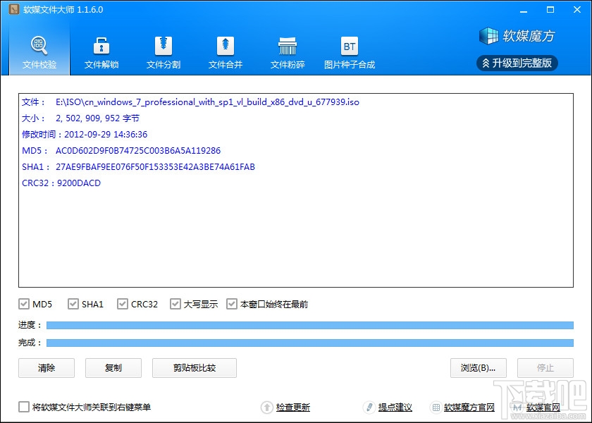 软媒魔方文件大师是从软媒魔方中提取的一款独立文件小工具。软媒魔方文件大师包含文件校验、文件解锁、文件分割、文件合并、文件粉碎、图片种子合成几个非常实用的功能!其中文件校验可以计算文件的MD5/SHA1/CRC32哈希值。文件删除不了?试试文件解锁功能吧,可以查看哪些文件给占用,到底给哪个进程占用,一目了然!然后一键解锁删除文件。文件分割功能,可以把一个大文件,按照设置的指定大小,分割成几个小文件。用文件合并功能,又可以把小文件合并成大文件!删除重要敏感的文件,怕给数据恢复软件恢复?试试文件粉碎吧,可以删除文件再进行填充数据,预防恢复。发图不留种,菊花万人捅。其实,贴吧上有很多图片带种子的,叫做图种!到底是怎样制作的呢?用图片种子合成功能就可以实现了,把种子合并到图片中去,就这么简单。