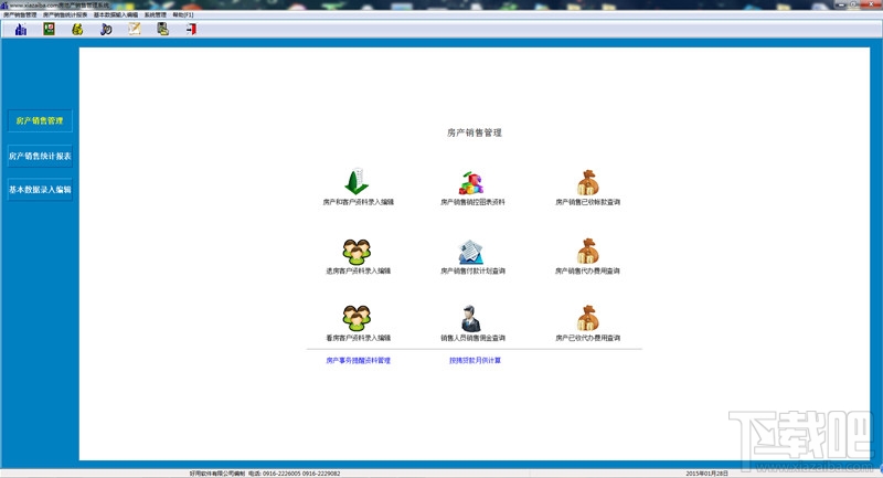 好用房产销售管理软件是一款能够让你管理房产销售的工具。好用房产销售管理软件为你提供了一个方便有效的售楼工具。系统功能有:房产项目资料录入编辑、购房客户资料录入编辑、房产销售销控图表资料、退房客户资料录入编辑、看房客户资料录入编辑、房产销售帐款资料管理、房产事务提醒资料管理、购房客户代办费用管理、销售人员销售佣金管理、房产销售数据统计报表、房产销售数据统计分析图表等。软件操作简单,功能强大,对代办费用和销售佣金都有管理和统计。报表美观并可将报表数据到入Excel中,软件报表自己定义。