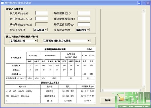 圆柱蜗杆传动设计计算程序主要对圆柱蜗杆传动进行设计计算,根据输入功率、蜗杆转速、涡轮转速、蜗杆传动比、预计使用寿命、每天工作时间、系统工作条件、系统负载情况、蜗杆材料以及工艺要求等参数,对蜗杆一步步指导性设计。