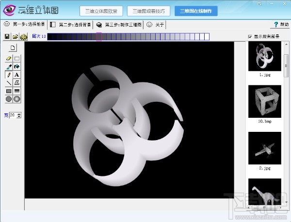 三维立体图制作欣赏王是一款内置了丰富的三维立体图画的看图软件,还是一款在线三维立体图制作软件。软件内置了上千个精美三维立体图画,并定时增加新作品。提供强大、专业级的三维立体图画制作功能,操作简单,轻轻松松制作自己喜欢的三维图画。