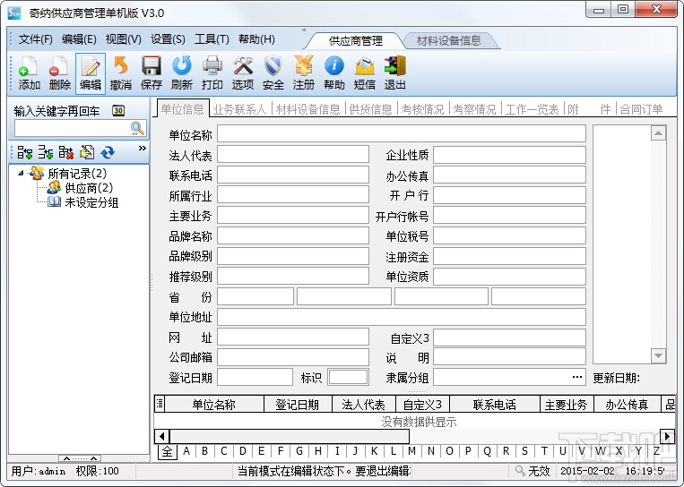 5.71 MB/2020-08-17奇纳供应商管理系统是一款功能极强的供应商管理软件,分别从单位信息管理、材料设备信息管理、业务联系人管理、供货情况管理、考核情况管理、考察情况管理方面着手,全面管理供应商的档案资料,帮助企业建立科学的供应商管理体系,
