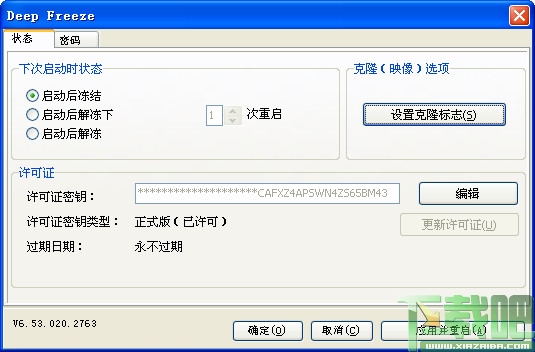 安装Deep Freeze的系统,无论进行了安装文件还是删除文件、更改系统设置等操作,计算机从新启动后,一切将恢复成初始状态,对学校机房、网吧等好处是不言而喻的。