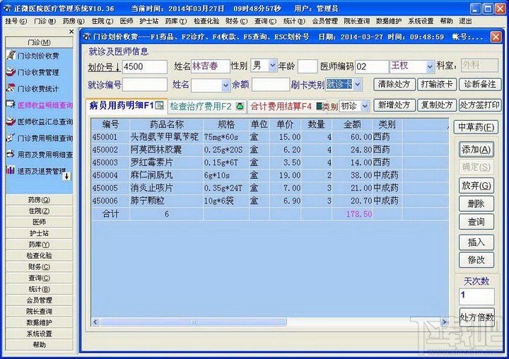 5、实用化:灵活的缴款、取药管理和丰富的查询、汇总功能,并提供各科室独立核算功能。