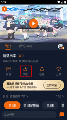 2、进入该番剧的播放界面,点击【下载】按钮即可缓存。