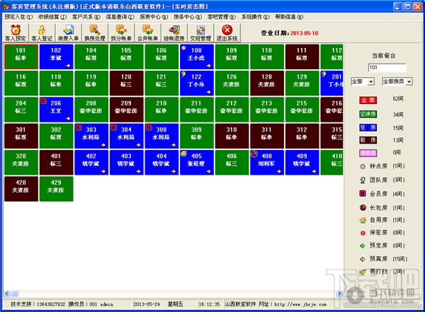 客房管理系统是一款非常专业的酒店客房管理软件,它实现了一般酒店行业日常营运的全面自动化管理,包括实时房态、客房预订、日结过租、在住客人、散客管理、团队管理、收银结帐、应收管理和操作日志等,可以让操作者实时了解客房情况并轻松管理客房。